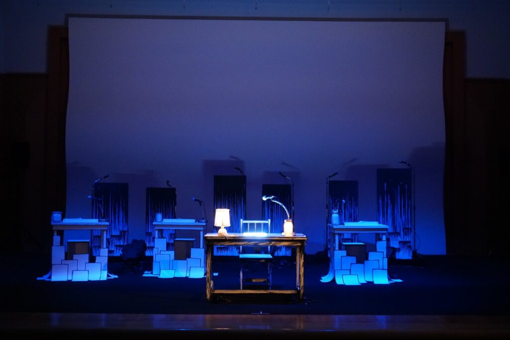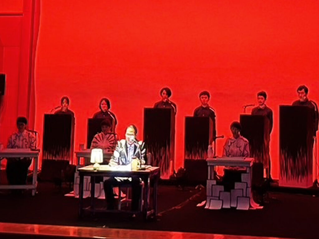 2024年の『漫画朗読劇 日野日出志』(企画・演出:五味伸之)も興味深い作品だった。漫画を朗読劇のテキストにし、漫画独自のオノマトペや記号(漫符)をバックに並ぶ合唱隊に歌わせる――そんな手法もあるのかと、斬新な発想に感嘆した。漫画のコマを追う視線を分析する、合唱の声量をこまやかに調節するといったことが功を奏して、単なる朗読劇以上に没頭できる作品を創りあげていたように思う。