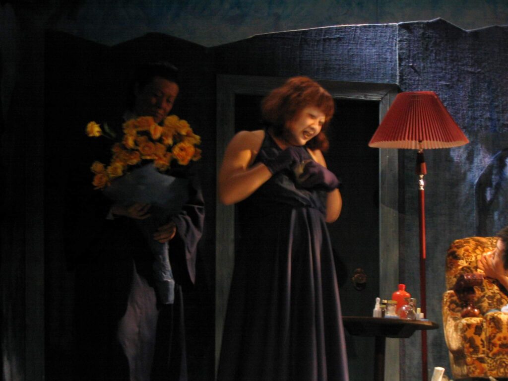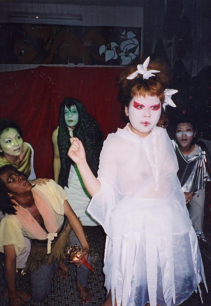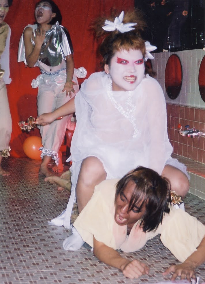 例えば、2002年の『サロメ』(演出:菊沢将憲)。浴場で欲情の演劇――ダジャレのようだが、本当に大衆浴場で公演を行った。風呂場を舞台にして観客は脱衣所からヨカナーンとサロメを「のぞく」。風呂場の湯気と湿気と(ぎゅうぎゅう詰めによる)熱気で気が遠くなりながらの観劇。作品が作品だけにこの設定だけでいくらでも解釈ができる。忘れられない一本である。